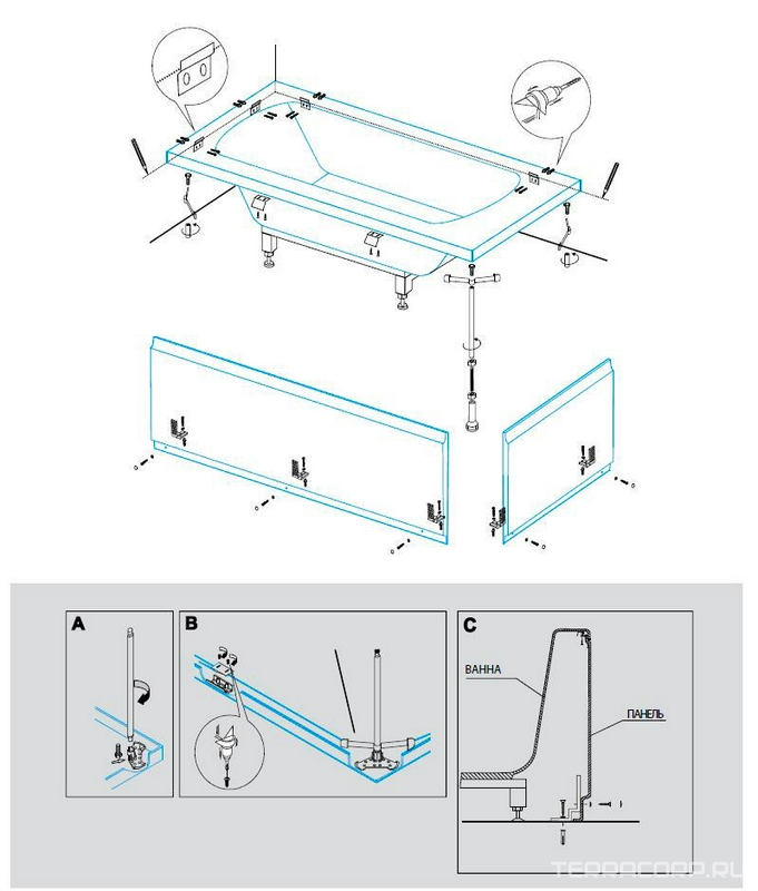 Универсальный установочный комплект для 2-х панелей прямоугольной акриловой ванны, Cezares ZZ