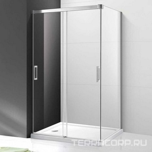 Штора на ванну, 2 сдвижных стекла, 190(188-190)хh145см, (вход 81см), установка в нишу, (проф.цв.хром, стекло 6мм прозр.), Tandem-Soft ZZ