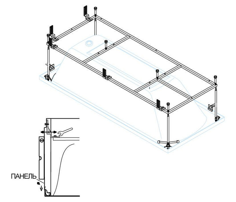 Каркас металлический для прямоугольной акриловой ванны 170х80см, (регулируемые ножки, крепёж в компл.), Cezares ZZ