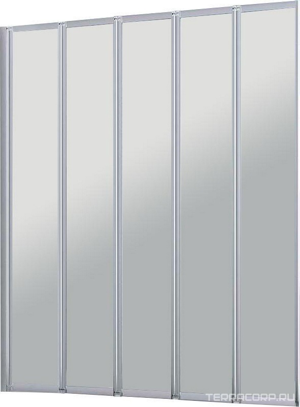 Штора на ванну складная 5 секций, 1200хh1400мм, крепление слева/справа, (стекло прозр. 4мм, фурнит. цв.хром), Vincea ZZ