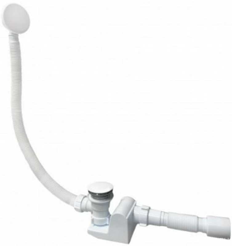 Слив-перелив для ванны, нажимной click-clack, выпуск,гофра, (пластик цв.белый / покрытие гель), Астра-Форм ZZ Астра-Форм Универсал click-clack, белый глянцевый (покрытие ГЕЛЬ) слив-перелив
