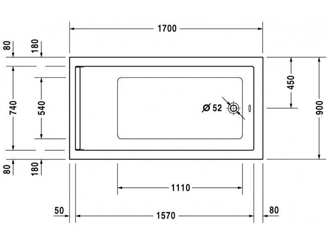 Ванна акриловая 1700х900хh485мм, без ножек и слива/перелива, Starck ZZ