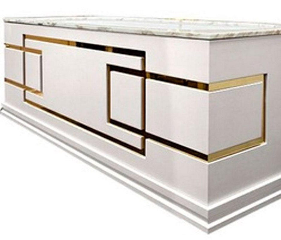Ванна 183(188,5)х83хh66см, сталь, фронт и бок панели цв.Bianco Lusido отд.цв.золото, SX левая, сверху мрамор цв.Calacatto Oro, сифон/комп., Aurelie ZZ