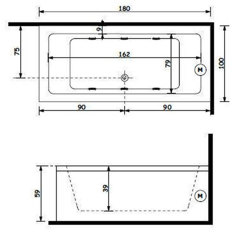 Ванна 180х100хh59см, на каркасе с фронтальной панелью и сливом переливом цв.хром в компл., (акрил), Quadra ZZ