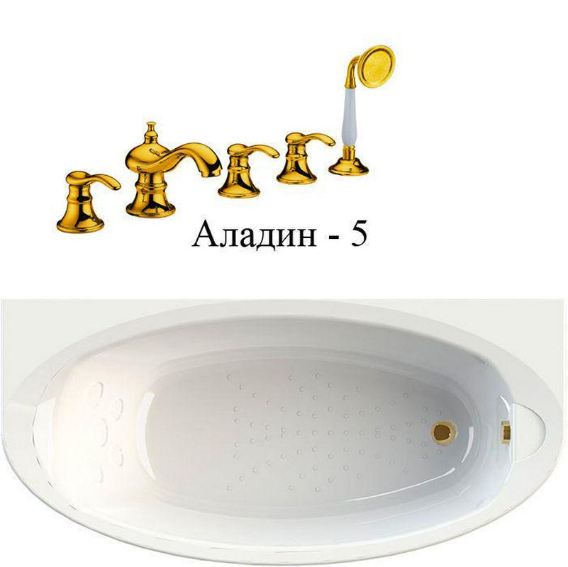 Ванна акриловая "", 1800х850 мм, смеситель "Аладин-5" (золото), молдинг золото, каркас и слив-перелив (золото) в компл., БЕЗ панели ZZ Radomir Неаполи в/НЕАПОЛИ золото
