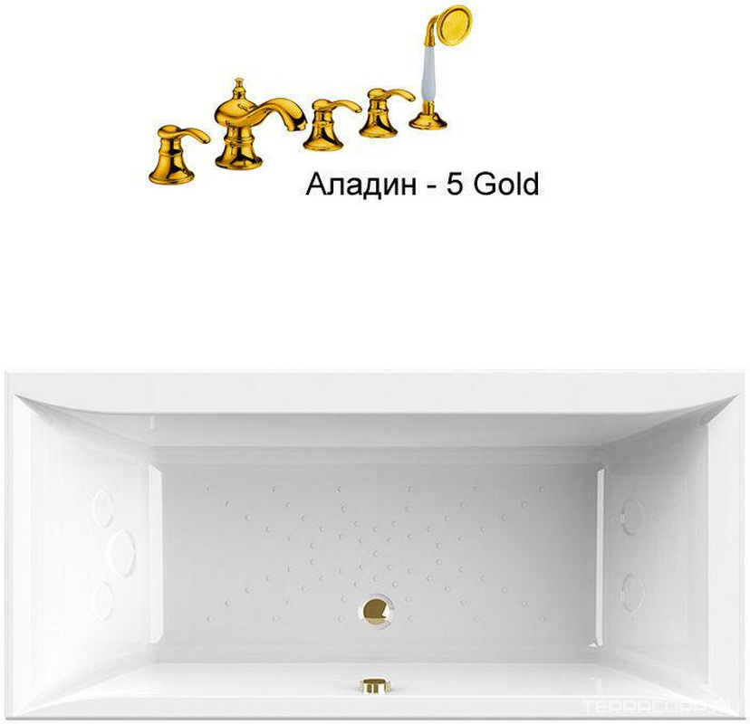 Ванна акрил. "ПАЛЕРМО", 1800х850, молдинг(золото), смеситель "Аладин-5-GOLD", каркас и слив-перелив(золото) в компл., БЕЗ панели ZZ Radomir Палермо в/Палермо золото