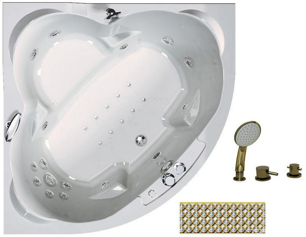 Ванна "СОРРЕНТО-GOLD",1480х1480, фронт.пан/"Swarovski"+ вствк."Арт-Мозаика", молдинг, ГМ6, НМ2, СМ7,смес/изл."Бриз-Ниагара-GOLD"+ контр.200, слив/зол. Radomir Сорренто 021986