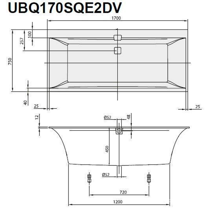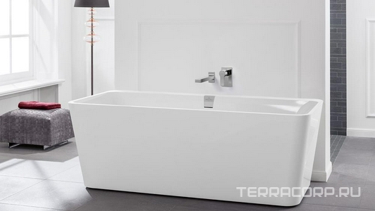 Ванна 1700х750х450мм, кварил, (цв. 01 белый), ножки пласт. h130-180мм и удлин.слив-перелив с хром и белыми накладками в компл,Squaro Edge 12 Duo ZZ