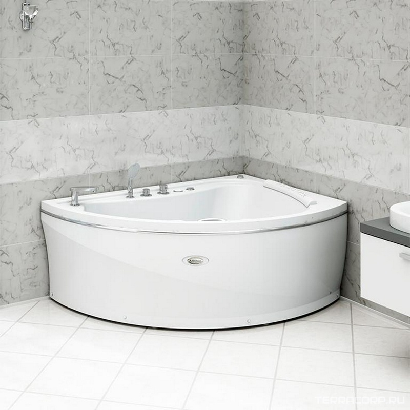 Ванна акр"АЛЬБЕНА", 1680х1200, прав, к/с, слив-пер/сифон (зол), ГМ"Терапия Gold",смес/изл "МиниБриз/ Линкольн" (м)", фронт.пан + молдинг, подголовник, Radomir Альбена 1-01-3-2-1-015К