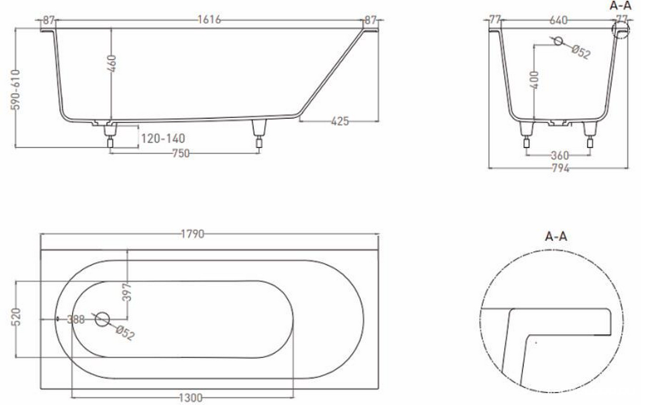 Ванна 180х80хh60cм,, литой камень Gelcoat цв.белый глянцевый, литые ножки, LOFO ZZ